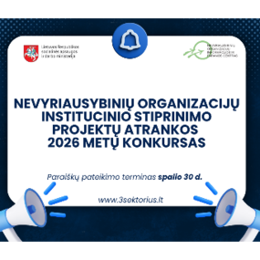 Socialinės apsaugos ir darbo ministerija skelbia NVO institucinio stiprinimo konkursą 2026 metams. Paraiškos priimamos iki spalio 30 d.