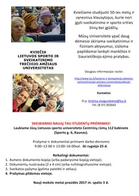 Lietuvos Sporto universitetas informuoja, kad nuo 2017 m. spalio mėnesio duris vėl atvers Lietuvos sporto ir sveikatinimo Trečiojo amžiaus universitetas (TAU).