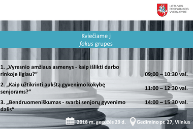 Maloniai kviečiame Jūsų atstovus dalyvauti fokus grupėse, kurios vyks 2018 m. gegužės 29 d., adresu Gedimino pr. 27, Vilnius. Dalyvauti galima tiek visose, tiek atskirose diskusijose.