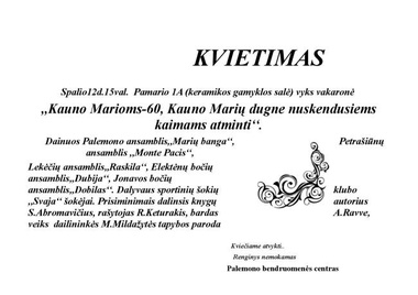 Kauno Marioms 60 - kviečia Palemono bendruomenė