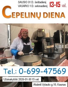 Norinčius pasimėgauti namų darbo cepelinais kviečiame iki sausio 30 d. (penktadienio) 15 val. užsisakyti norimą kiekį telefonu 0-699-47569.