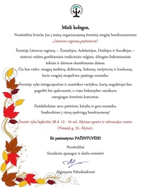 Nuoširdžiai kviečiu Jus į mūsų organizuojamą šventinį renginį bendruomenėms „Lietuvos regionų pažintuvės“.